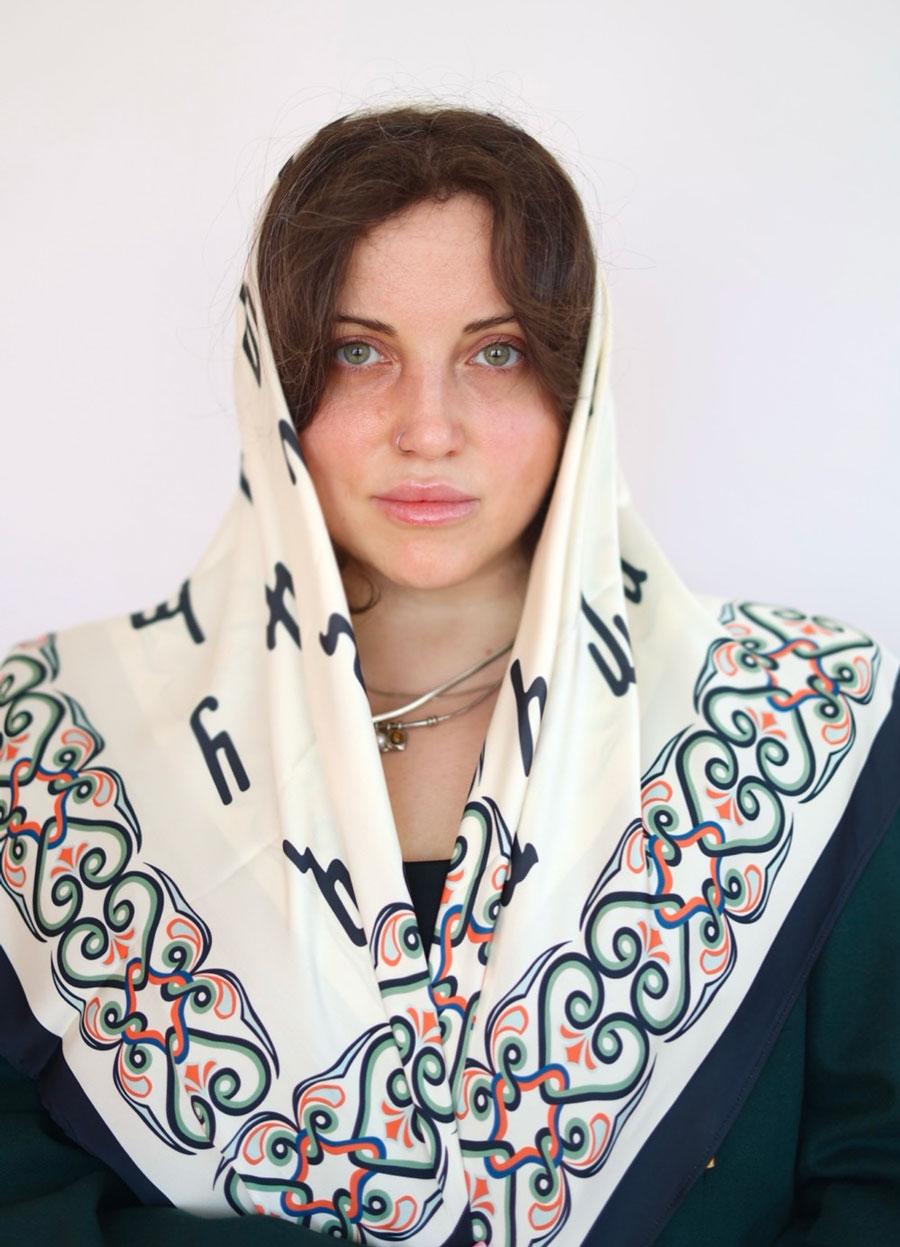 აბრეშუმის შარფების ლიმიტირებული კოლექცია, მორთული ქართული ანბანით და ორნამენტებით. ყველა მოდელს აქვს უნიკალური იარლიყი და ბარათი, სადაც დატანილია ინფორმაცია თუ რომელ გამოშვებას ფლობთ კოლექციიდან.