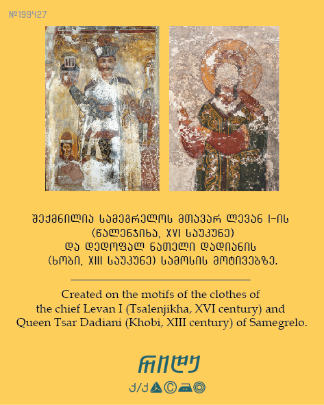 შექმნილია სამეგრელოს მთავარ ლევან I-ის (წალენჯიხა, XVI საუკუნე) და დედოფალ ნათელი დადიანის (ხობი, XIII საუკუნე) სამოსის მოტივებზე.
